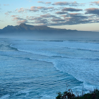 The road became paved, it widened into about a 1 and a half lane road and the landscape opened up into rolling hills with the ocean stretching endlessly next to us. The light was shifting to that soft, late-afternoon glow that makes everything shimmer. The road felt modern but the landscape felt ancient. There were very few people on the road and we got to enjoy the ride. We even passed a little ole cow, perfectly at ease on the edge of the world, chewing lazily as if he was saying, You made it.