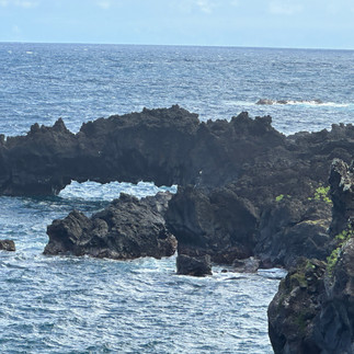 As we kept going, we reached the Wai'anapanapa State Park. We had to make reservations the day before and we had to go within our time slot. Jim picked the perfect time and we made it right on time. The park is known for it's black sand, blow holes and lava tubes. Mother nature is astonishing! (any yes, that is Jim trying to conjure up mother nature)
